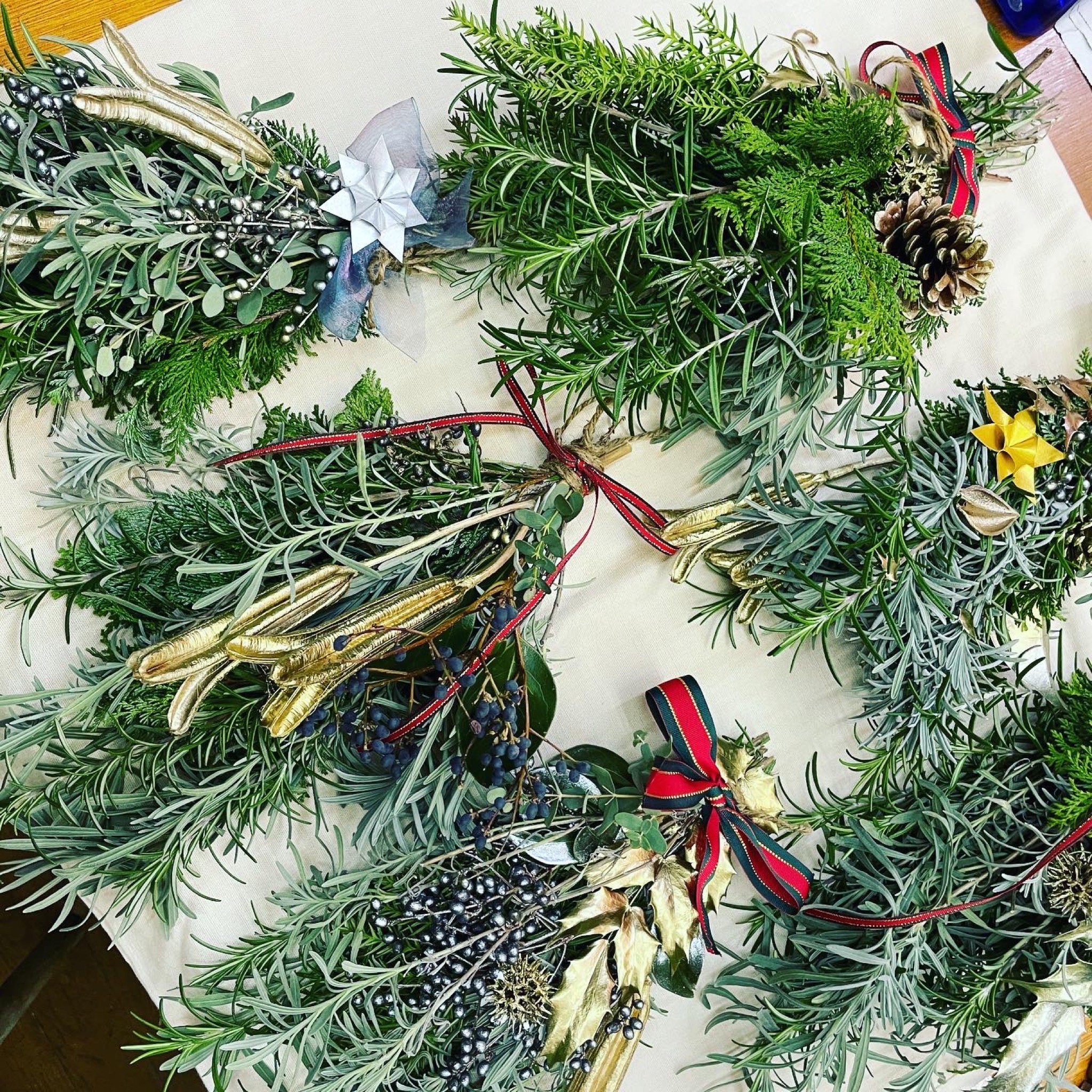 1年の大きな流れの中で春から冬へ向けて、色彩の学びから形の学びへ、光や立体の学びへの流れを意識してカリキュラムを考えています。例外もあるのですが四季の流れを意識して大きなリズムを作り出せるように意識しています。冬を迎えて自然の色彩が変化していく事を実感すると、私たちが大きなリズムの中に生きている事を改めて感じます。シュタイナーの学びの中ではこのリズムをとても大切にしていると思う事が沢山あるのですが、冬のクリスマス制作の試作を作る中で、ストロースター(藁で作る星)の制作手引きの中にこんな言葉を見つけました。「規則を守ることは美しいこと。」規則を守ると聞くと堅苦しくて窮屈なイメージもあるのですが、自然界の中の花弁の数やリンゴの五角形、互い違いに並んだ樹木の葉の並び。生き物の鼓動。さまざまな所に自然の規則性のある美しさが存在している事に気づきます。本来は規則性のあるリズムに身を置くことは心地いことなのでしょう。
