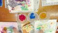 ⭐︎クレヨンの色をかさねてまぜる。えのぐは色をつくって水でうすめる。