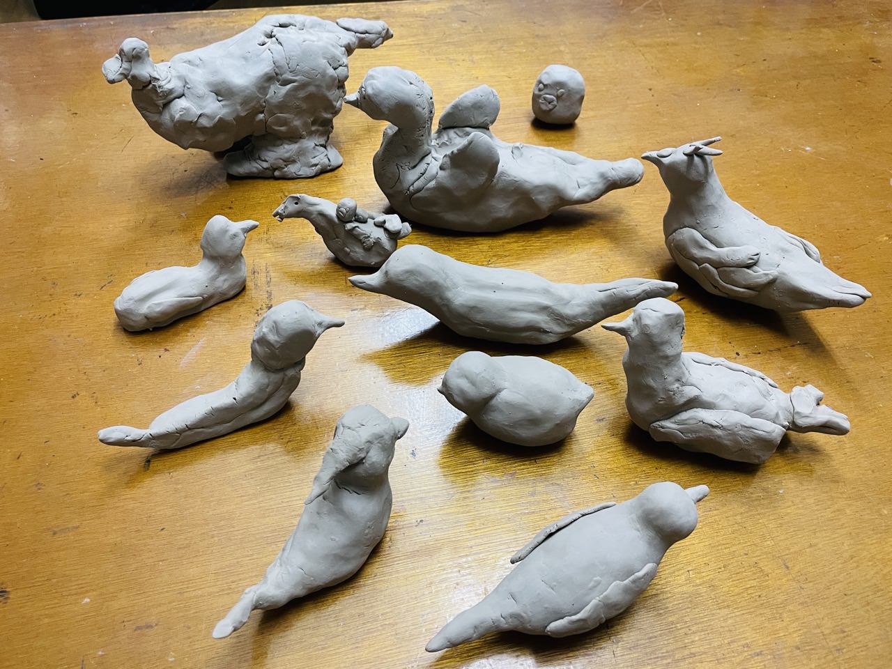 ↑次の週ではいよいよ卵型から鳥の形を作っていきます。水彩で練習した順番で粘土も形を変えていきます。粘土の扱いにもだいぶ慣れてきました。自然と360°回しながら形作っていく姿が見られました。一口に鳥といっても、スズメや雛鳥、シマエナガやハト。1人1人それぞれの中にある鳥がカタチになっていくのが面白いです。